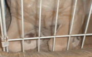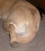 わたしが左利きである事が分かってしまったついでに、すこしわたしの足のしぐさについてお話しましょう。 この時期わたしはリビングの床マットに上げてもらい、朝の楽しいひとときを過ごすことがあります。テーブルの上でのご主人達の会話を聞きながら、マットに投げ出されたご主人達の足にちょっかいを入れたりして遊んでますが、その内長々と伸びた姿勢でうとうととする事があります。そんな時、決まってする後ろ足のポーズがあります。それも、決まって左後ろ足なんです。かかとをひっくり返して、立膝のようなポーズでいるのがなんとも気持いいのです。 次ぎにするポーズが、ゲージの中で部屋の様子を伺う時にとる前足のポーズです。別にゲージが狭くってしているわけではありませんが、ついついこう前足を折って出きるだけ顔を前に出して、部屋の様子が分かるようにするとこんな前足のポーズになってしまいます。 特段ご披露するような事ではありませんが、ワンちゃんそれぞれ決まってする癖があって、自分では分かりませんが見た目かわいいなんか言われると、ついつい得意になってしまいます。どうも失礼致しました。 |