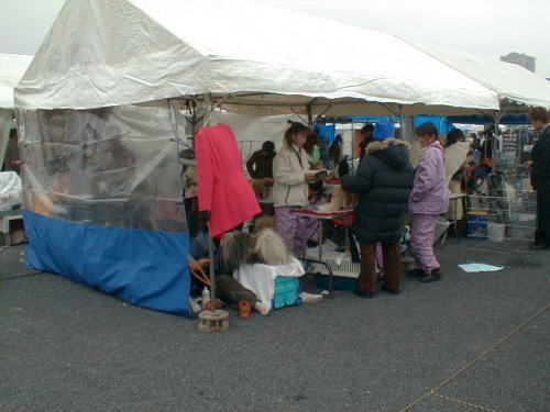 | 曇り時々雨から、曇り時々晴れ暖かくなるでしょうから、曇り気温は低めでしょう。一週間前からの今日の天気予報です。そして今日の実際の天気は曇り、気温は低め北西の風が強い一日です。 今日の天気予報が気になるのは、この日主人が幕張メッセで開催されるドッグショーを見に行くことにしているからのようです。 主人はお昼前には帰ってきましたが、主人の語るドッグショーの様子は以下のとおりでした。 近くでありながら幕張メッセの駐車場に入るのは初めてです。小型車一日900円なりの料金はまあしょうがないにして、入り口が分かり難いのには困りました。駐車場の回りを一周しましたがドッグショーをやっているような気配が一向にしません。(写真1) 駐車場がやたらに広いので、駐車するところは入り口から随分奥に入ったところです。料金後払い、車は結構来ていますが、ここでもドッグショーをやっている気配がさっぱりありません。 ひょっとして、中のホールでやっているのかもしれません。建物もやたら大きいので、ホールを探すのも一苦労、建築車両展示、ブラスバンド競技、さかな祭りなんかのイベントはやっているようですが、ここもドッグショーの気配なし。 たしかメッセ駐車場で開催とあったことを思い出し、気を取り直して駐車場へ戻りましたがワンちゃんの姿はさっぱりありません。 仕方なしに駐車場管理事務所で尋ねたら、向かいの臨時駐車場で開催しているとのこと、指差す方を見ると、はるか向こうのほうでそれらしきテントが沢山あるようです。あ〜あ、それにしても案内板くらいは出しておいてくれてもいいのにと思いながら、駐車料金の900円がもったいないと出口に向かいました。 出口では、私と同じような間違いをした車が何台かいました。順番待ちをしていたら係員が車に貼ったラブのワッペンを見て、「間違って入ったんですね、料金はいりません」とのこと、やれやれ。 臨時駐車場と言っても結構な広さ、その先は卸専門のスーパ「コストコ」があります。我が家も開店最初の年は「コストコ」の年会員になりましたが、あまり利用することもなかったので2年目の更新は止めました。会員でないと入場できませんので、「コストコ」で買い物をすることはもうできません。(写真2) 予想外の時間をつぶしてしまって、会場に着いたのは9時を回っていました。ここでも駐車料金500円也。 会場はテントがぎっしり張られていて、どのテントの中もワンちゃんのトリミングに余念がありません。和やかな中にも緊張感が感じられます。(写真3) さっそく本部席のテントに行って受付で出陳カタログを購入、大枚2000円也でした。カタログの表紙には2002 FCI インターナショナルドッグショーと書かれた下に、会場千葉市幕張メッセ隣接駐車場と書いてありました。たしかJKCのイベント情報には「隣接」という文字は入ってなかったように思いましたが・・・。 ラブラドールは8グループですが、今回は単独システムで審査されるようです。このあたりの仕組みもまだよく理解できません。 サリーの出陳以来ドッグショーについて、いくつかのサイトで調べて予備知識を得ることができたので、ショーを色々な角度から興味深く見ることができました。(ドッグショーの解説サイト) 結局ラブの審査しか見ませんでしたが、あらためてラブの体形はバライティーに富んでいることを認識することができました。決して人間の体形ではありません、念の為。(写真4) また、審査の合間に、サリーのフケのことでアドバイス頂いたTRIPLE STER LABRADORSの経営者ご夫妻にお目に掛かることができました。今回は5頭を出陳されていると言うことでした。 ショーの雰囲気を多いに満喫し、会場の出店を見て回り、犬に関係する色んなグッズを見る楽しみも味わいました。ささやかながら、ラブのワッペンを一枚購入、またラブ好きの車だと分かるように。 |