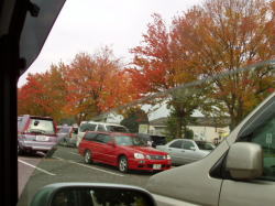 この時期は晩秋の風も空気もひんやりと爽やか、駐車場の回りの欅は綺麗に色づき、車の中からの眺めも素敵です。