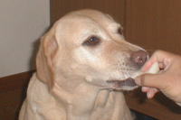 | 食欲の秋も日一日と深まって行きますが、この蒸し暑さは一体なんでしょう。お日様が照ったと思ったら、ざ〜と大粒の雨が降り出して雷様までゴロゴロと、季節の変わり目だからでしょうか。 それにしても、梨、ぶどう、秋の果物が出てきて、やっとわたしの口にも回ってくるようになりました。わたしは、梨とぶどうにはもう目がないんです。 「いや〜、いつものことだけど、ラムはほんとに鼻がいいな〜」「今に始まったことではないでしょう」 テーブルで梨やぶどうを食べているとすぐ分かります。そんな時つい ヒ〜 と声が出てしまうのです。すると決まって、わたしの口にも回ってくるって寸法です。 この梨やぶどうは食べ方があって、いつものようにぱくっと一口で食べてしまっては、あのみずみずしい、そして甘い果汁を味わうことができません。 わたしたちは、食べ物を味わって食べる習慣はありません。臭いと食感を大事にして、味は二の次です。如何に他の仲間に横取りされないように、如何に多く食べるかという本能があって、のどを通るものであればすぐ飲み込んでしまうことにしています。 しかしこの梨やぶどうは、一度主人の言うようにして食べてからその味が忘れられず、以来そんな食べ方をしています。 梨やぶどうを食べる時は、まず手に持ってもらい食べさせてもらいます。前歯で小刻みにかじって行くようにして食べるのです。その時「うにゃうにゃ、うにゃうにゃ」と言ってもらえると、より調子が出ます。特にぶどうは、その時絞り出して行くような感じで食べさせてもらうと、果汁がジワ〜と出てきてもう最高です。 前歯でかじる時も、指を感じるとゆるくかじると言うように、結構気を使いながら食べるので、指をかじるようなことはありません。ところが最近それをいいことに、わざと指を食べさせようとするふしが見えるんです。気を使ってるんですから、いたずらは止めてもらいたいと思います。 そう言ってる所に梨の臭いがしてきました。ここは一つ、催促のサインを出さねば・・ヒ〜、ヒ〜。 |